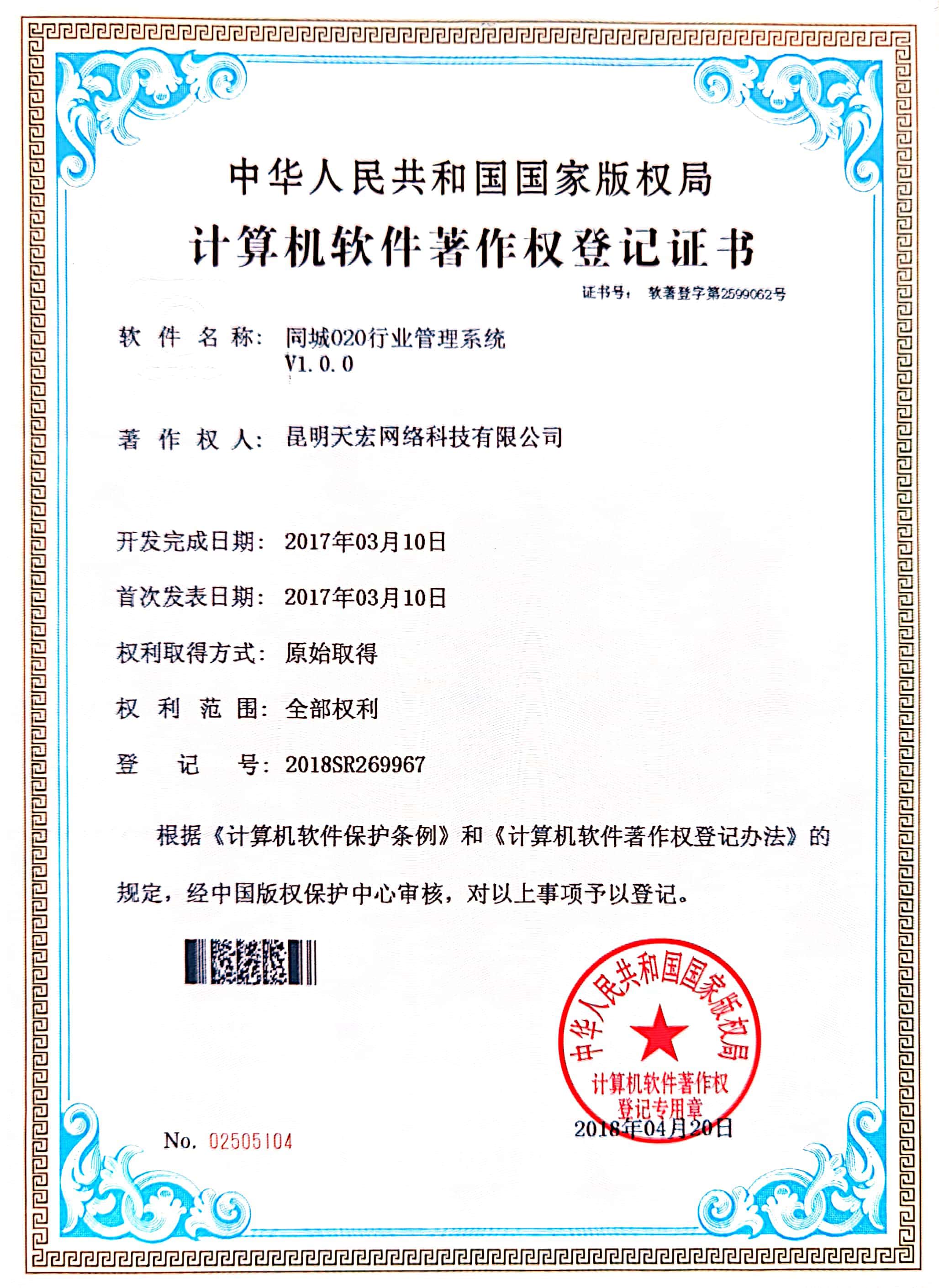 天宏網(wǎng)絡(luò)通過不斷的研發(fā)創(chuàng)新,現(xiàn)擁有50多項(xiàng)計(jì)算機(jī)軟著證書,包括多商家點(diǎn)餐系統(tǒng)、門店收銀管理系統(tǒng)、通用OA協(xié)同辦公管理系統(tǒng)、智慧商圈運(yùn)營管理平臺(tái)、天宏健康智慧+系統(tǒng)、同城O2O管理系統(tǒng)等。